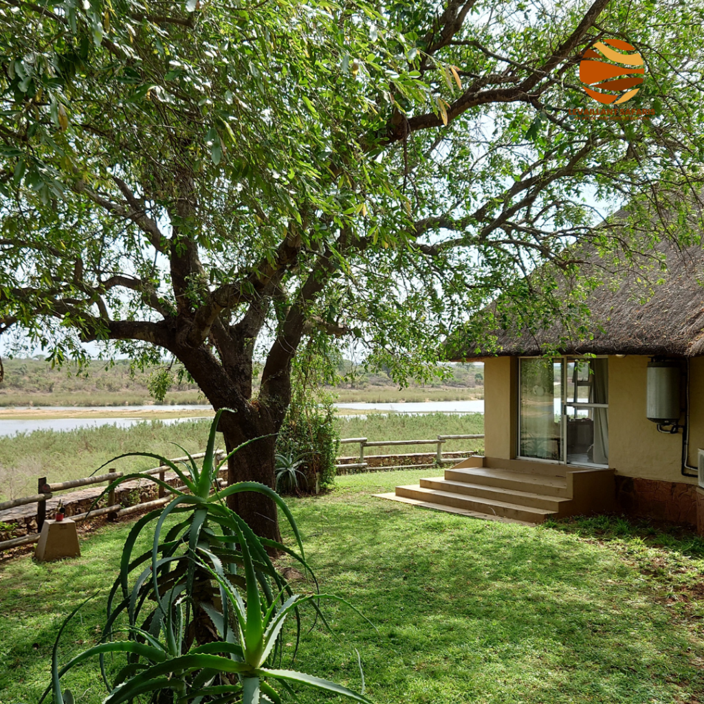Ponton et jardin privé au bord de la rivière aux éléphants, GinTo dans la lueur du feu de bois rouge, marche inquiète dans la nature au couchant, agneau et antilope à la braise, rencontre de la faune en convoi radioguidé, projections nocturnes, un godet de vrai Champagne…